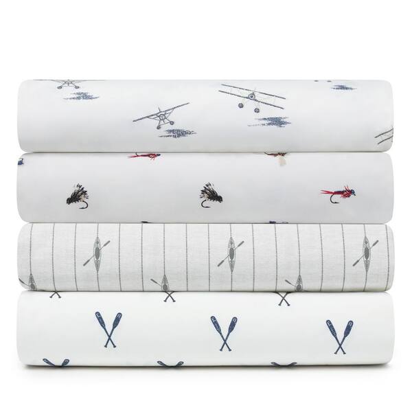 Eddie Bauer Fishing Flies 4 Piece Multi Colored Wildlife 200 Thread Count Cotton Percale Queen Sheet Set 213018